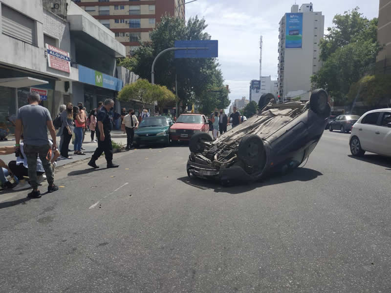 Impresionante choque y vuelco en el centro de la ciudad