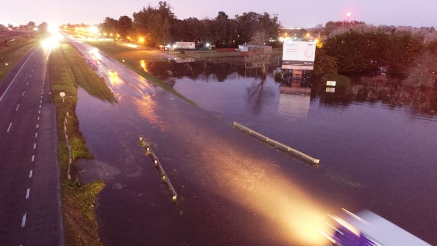 Producto de las intensas lluvias caídas en la jornada del martes en la ciudad, tramos de la ruta 2 amanecieron inundados