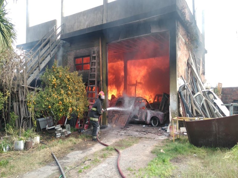 Fue en ese momento que parte de la mampostería cayó sobre el fuego y provocó que se expandiera el foco ígneo, tomando dos vehículos que estaban allí guardados.