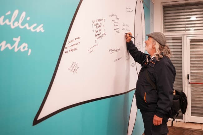 Asimismo el público participó interviniendo con mensajes la gigantografía de un gran pañuelo blanco, símbolo de la lucha de Madres y Abuelas de Plaza de Mayo con mensajes. Está acción dio comienzo con la participación ?de Guillermina Tonetti trabajadora del Teatro Auditorium y familiar directo de María del Carmen “Coca” Maggi (docente y decana universitaria secuestrada y asesinada), junto a Eduardo nachman (Hijo de Gregorio Nachman), Madres, Abuelas y nietas y nietos recuperados.