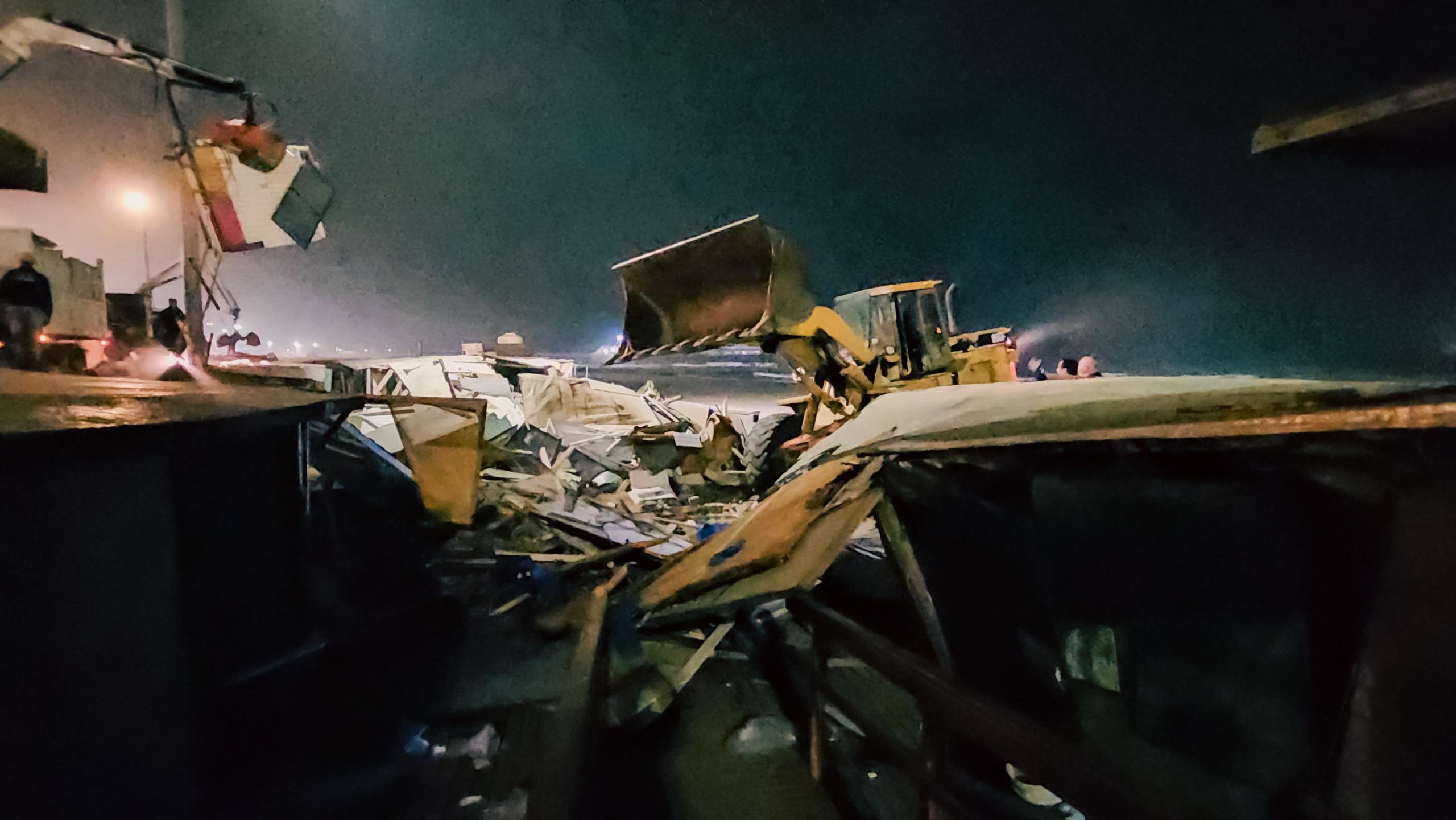 El centro comercial a cielo abierto que el miércoles había sido allanado por orden de la Justicia Federal fue demolido durante la madrugada.