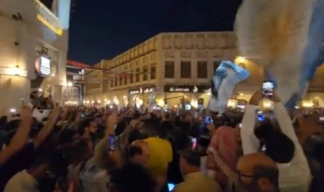 Miles de fanáticos se reunieron en Souq Waqif, uno de los mercados turísticos de Doha, para apoyar a la Scalonetta