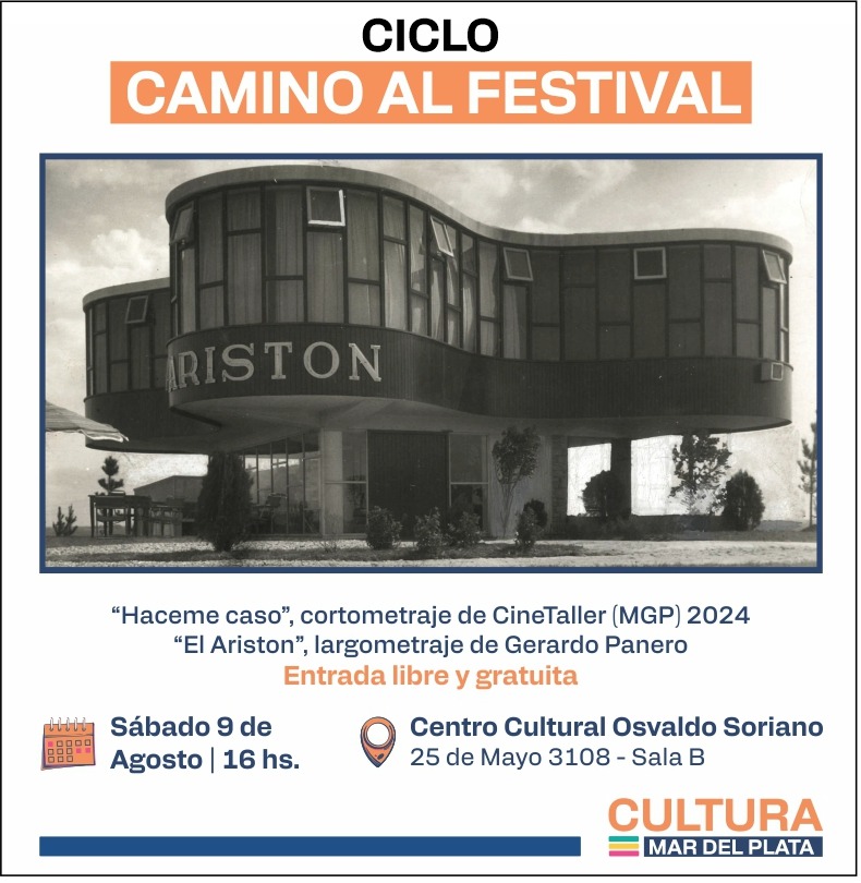 El sábado 9 de agosto se proyectará el largometraje documental “El Ariston”, de Gerardo Panero, antecedido por el cortometraje “Haceme caso”, realizado en Cinetaller (MGP) 2024.