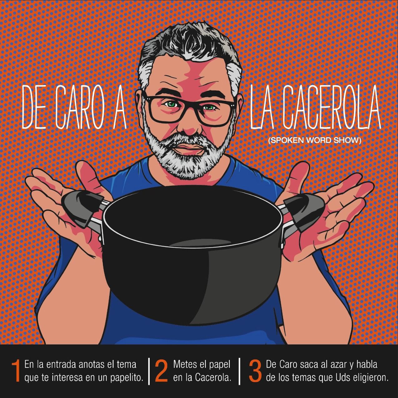La dinámica es simple y divertida: al ingresar a la sala, cada espectador escribe en un papelito un tema sobre el que le gustaría escucharlo hablar. Esos papeles se colocan en una cacerola y, durante el show,