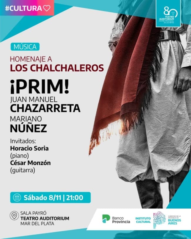 Juan Manuel Chazarreta y Mariano Núñez se unen para presentar ¡PRIM!, un espectáculo que rinde homenaje a la legendaria trayectoria de Los Chalchaleros.