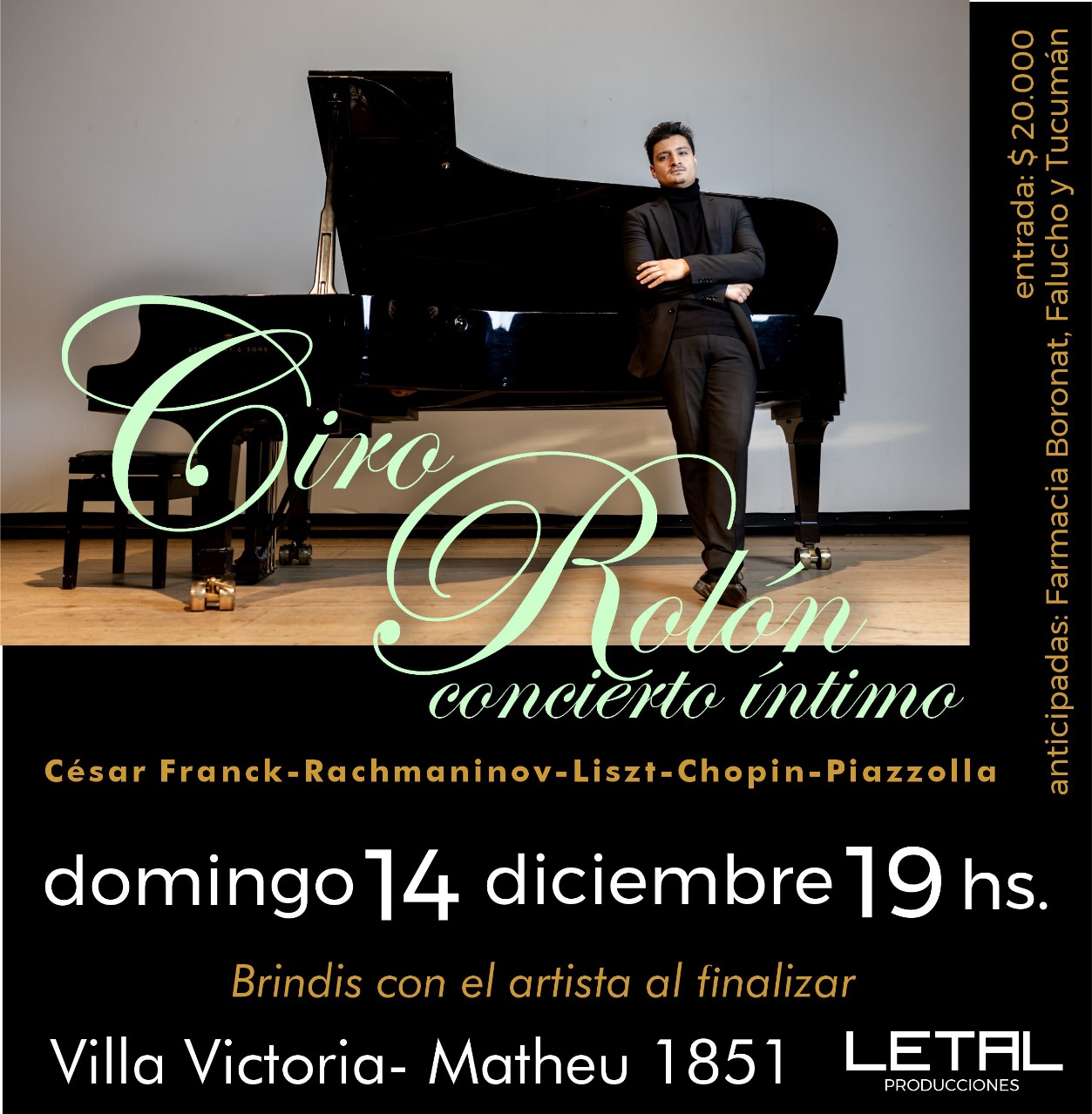 La ciudad se prepara para recibir un evento musical de cámara verdaderamente excepcional. El eximio pianista Ciro Rolón, de tan solo 27 años y ya consolidado como parte del staff del prestigioso Teatro Colón de Buenos Aires, ofrecerá un concierto íntimo en el corazón de un ícono marplatense: el Microcine de Villa Victoria, el próximo 14 de diciembre a las 19 horas.