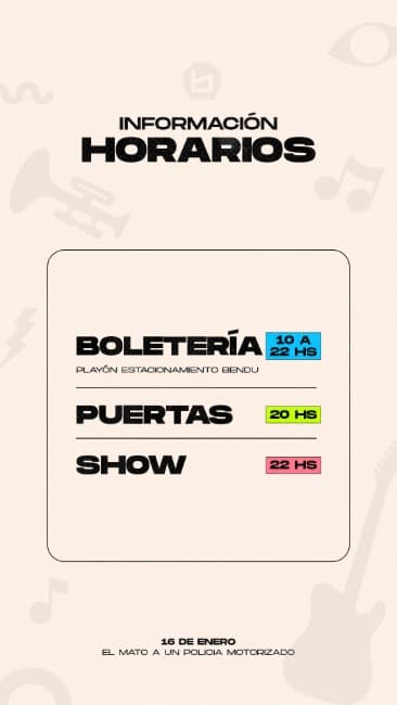 EL MATÓ A UN POLICÍA MOTORIZADO: puerta 20 h. - show 22h.