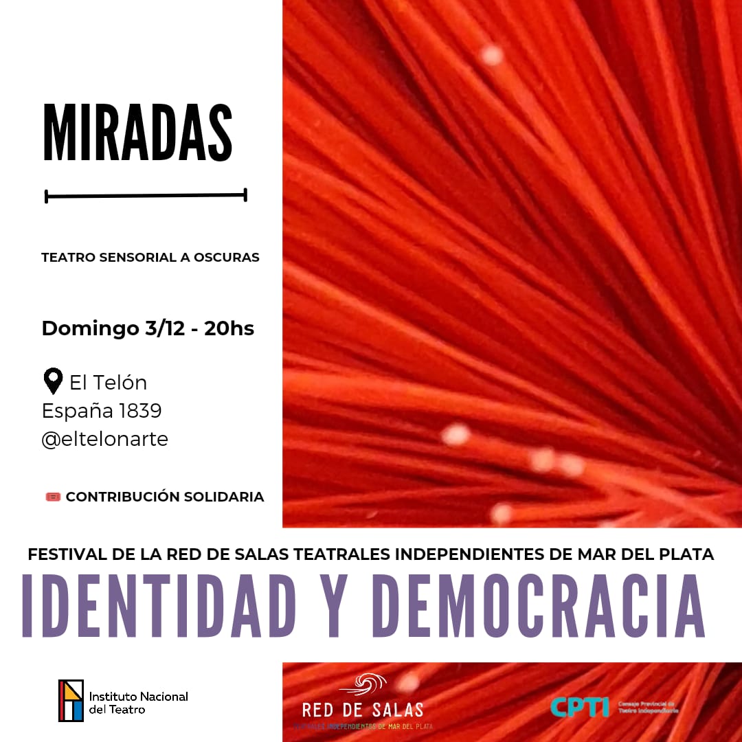 Será el Domingo 3 de Diciembre en el Teatro El Telón España 1839 a las 20hs con MIRADAS Teatro sensorial a oscuras