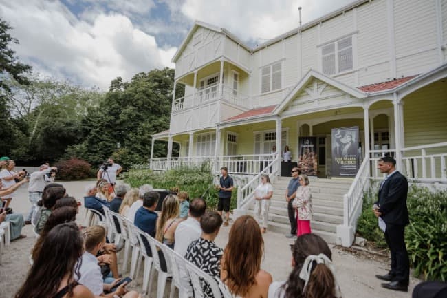 El pasto que rodea la escultura que emplazó el médico Mario Magrini en Playa Chica completamente seco
